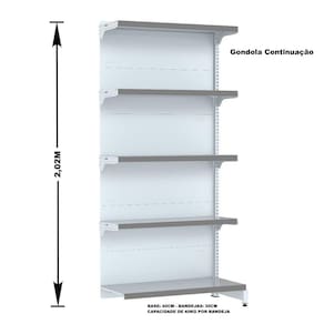 GÔNDOLA PAREDE 202 FIT AMAPÁ PARA VÃO DE ATÉ 2 METROS 40/30 BRANCO 10 BANDEJAS PORTA ETIQUETA CINZA