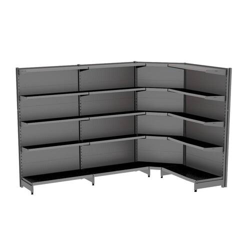 GONDOLA PAREDE 202 FIT AMAPÁ PARA VÃO DE ATÉ 3 METROS MAIS UM CANTO 40/30 PRETO 20 BANDEJAS PORTA ETIQUETA CINZA