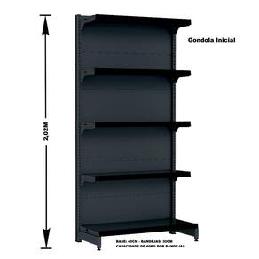 GÔNDOLA PAREDE 202 FIT AMAPÁ PARA VÃO DE ATÉ 5 METROS 40/30 PRETO 25 BANDEJAS PORTA ETIQUETA PRETO