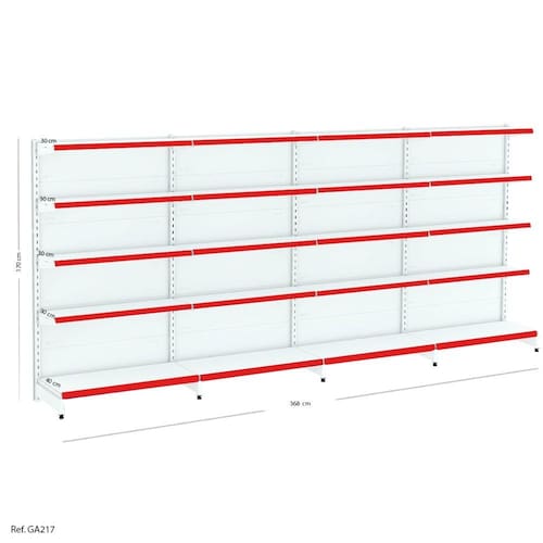 A Gôndola Premium Flex 40 é ideal para supermercados, mercearias, lojas de utilidades, materiais de construção, agropecuárias e outros. Prática e fácil de montar, com sistema de encaixe sem utilização de parafusos, possui bandejas reguláveis a cada 4,5 CM, pés com regulagem de altura, colunas duplas e tratamento especial da superfície.Todos os produtos desta serie possuem qualidade, resistência e durabilidade garantidas pelo uso de matérias-primas de alto padrão, processos produtivos com a mais alta tecnologia e um cuidado especial em cada etapa. Pintura eletrostática epóxi, com tratamento antibacteriano, antiferrugem, uniforme e resistente.