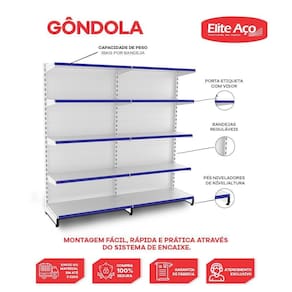 As gôndolas ELITE AÇO proporcionam maior e melhor visibilidade dos seus produtos, aumentando seu fluxo de vendas e tornando seu negócio muito mais rentável! Perfeitas para exposição e armazenagem de produtos, são confeccionadas com pintura eletrostática epóxi anticorrosão e antiferrugem, proporcionando maior durabilidade. São compostas de aço de excelente qualidade, proporcionando maior durabilidade. São compostas de aço de excelente qualidade, oferecendo mais resistência e segurança na armazenagem das mercadorias expostas. E mais, conta com um sistema de montagem sem parafusos, tornando o produto mais "clean" e agradável visualmente, além de facilitar e agilizar sua montagem. Produto enviado desmontado, com baixíssimo custo de e fácil montagem, acompanha manual.