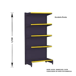 A Gôndola Ponta Premium Flex 40 finaliza ou inicia a fila da gôndola de centro é ideal para supermercados, mercearias, lojas de utilidades, materiais de construção, agropecuárias e outros.