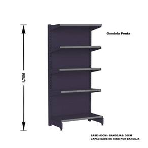 A Gôndola Ponta Premium Flex 40 finaliza ou inicia a fila da gôndola de centro é ideal para supermercados, mercearias, lojas de utilidades, materiais de construção, agropecuárias e outros.
