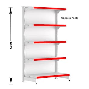 GÔNDOLA PONTA 170 FIT AMAPÁ 40/30 BRANCO 5 BANDEJAS PORTA ETIQUETA VERMELHO