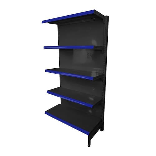 Gôndola Prateleira Preta 5 Níveis 40x30 New Plus 1,70 Parede Continuação PE Azul- SA Gôndolas