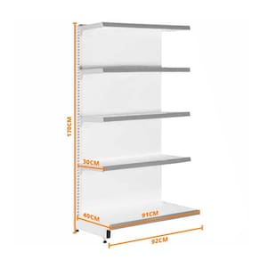 A gôndola possui 5 níveis de exibição, incluindo a base e quatro bandejas.