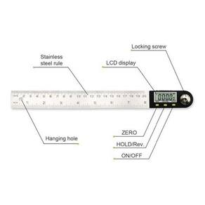 ESPECIFICAÇÕES Marca: Shahe Material: Aço inoxidável Modelo Número: 5422300 Faixa de medição: 0360 graus Batteria: 3VCR2032 Resolução: 0.05 graus Temperatura do trabalho: 0 ° C 40 ° C