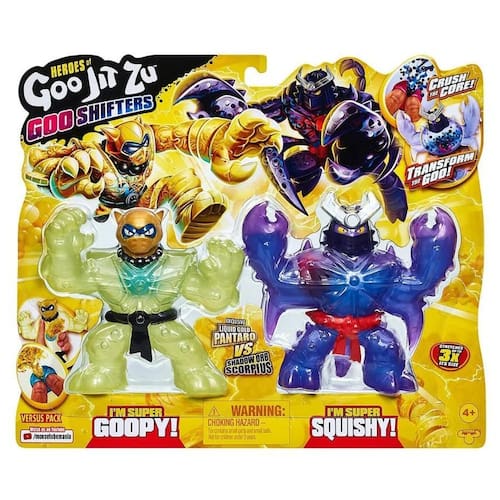 Goo jit zu pack com 2 scorpius e pantaro - sunny 3362 descrição: os heróis de goo jit zu goo shifters versus pack estão aqui - seus heróis elásticos e macios favoritos voltaram e estão prontos para serem energizados por você - esmague o core of thrash para ativar sua formação goo - veja como o goo dentro de seu corpo muda - esmague e estique-os até 3x seu tamanho e observe como eles retornam à sua forma. - liquid gold pantaro é super goopy e shadow scorpius é super squishy. Características: marca: sunny brinquedos referência:3362 idade recomendada: a partir de 4 anos pilhas inclusas tipo de pilha/bateria não necessita de pilhas possui luzes: não possui sons: não dimensões aproximadas da embalagem: 25 x 29,5 x 7,5cm a x l x c garantia: 3 meses a contar da emissão da
