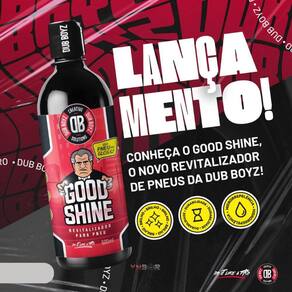 O good shine foi desenvolvido com materiais de alta tecnologia para proporcionar brilho, hidrorrepelência e durabilidade aos pneus do seu carro de forma rápida e eficaz. Com sua fórmula especial, mantém o brilho intenso e os protege contra a água, garantindo que o produto dure por mais tempo. Embalagens - garrafa 500ml - tampa flip top duracao: primeira aplicacão: 15 dias / terceira aplicacao: 30 / 45 dias. Rendimento: em média 25 carros. Modo de usar: 1. Agite o frasco antes de usar. 2. Certifique-se de que o pneu esteja limpo e seco. 3. Com a tire brush, aplique de forma homogênea. 4. Para um resultado com mais brilho repita o processo após 10 min. Tags: pretinho para pneus dub boyz the good shine 500ml revitalizador de pneus dubboyz good shine 500ml the good shine dubboyz 500ml - lancamento pretinho dub boyz Marca: Dub Boyz Ean: 00395665468051