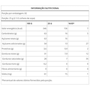 Informação Nutricional Porções por embalagem: 82 Porção: 25 g (2 1/2 colheres de sopa)