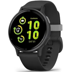 GPS Garmin Relógio Vivoactive 5 Preto com pulseira Silicone Preto. Monitoramento de energia Body Battery™, mais de 30 aplicativos esportivos, treinos e Garmin Coach. Pontuação de sono e orientações personalizadas. Monitora empurrões e oferece exercícios integrados para usuários de cadeiras de rodas.Processador