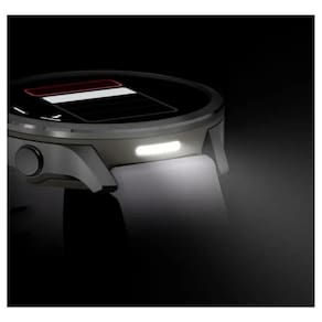 Tela AMOLED colorida e brilhante de 1,2 polegada Até 10 dias de autonomia no modo smartwatch Recursos avançados de saúde e fitness Caixa leve de 41 mm com design em metal Compatível com o aplicativo Garmin Connect™ em smartphones iPhone® e Android™ Lanterna LED potente