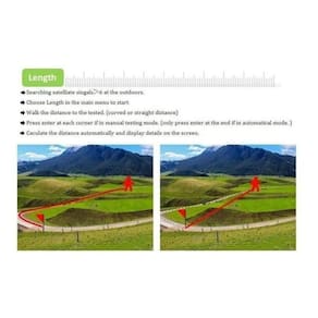 Atenção: 1. Não perto de obstruções altas (construção, árvore algo assim) porque este dispositivo se encaixa ao teste vazio de ourdoor. 2. Espere para, depois de pesquisado 6 satélite para começar a trabalhar. 3. Não meça menos de 0.3 mu terra. (1 mu equivale a 200 metros quadrados) 60 metros quadrados 4. Não cruze ou sobreponha a trajetória ao medir. 5. Antes de medir, verifique se as coordenadas de latitude e longitude estão estáveis.