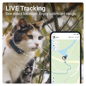 Rastreador GPS trativo e monitoramento de saúde para gatos (mais de 6,5 libras) — Rastreador de localização GPS para animais de estimação líder de mercado | Alertas de bem-estar e fuga | Impermeável | Funciona com qualquer coleira (azul escuro)