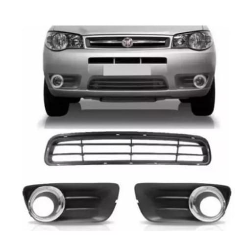 grade central + molduras grade do parachoque com milha aro cromado fiat palio siena lado direito e lado direito cor cinza