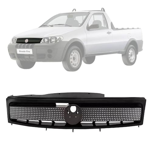 Grade dianteira fiat strada 2003 2004 2005 2007 2009 preto grade frontal de excelente qualidade, fixação duradora como o mesmo exposta ao calor. Seu carro recuperará aquele visual clássico. Grade frontal para o fiat strada 2003 a 2009. Especificação: - feito em plástico resistente - modelo semelhante ao - produto - cor: preto fosco base - fabricante: top mix