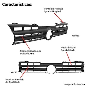 Grade dianteira vw gol bola g2 94 95 96 97 98 99 preto grade frontal de excelente qualidade, fixação duradora como o mesmo exposta ao calor. Seu carro recuperará aquele visual clássico. Grade frontal para o volkswagen gol bola g2 1994 a 1999. Especificação: - feito em plástico resistente - modelo semelhante ao - produto - cor: preto fosco base - fabricante: top mix