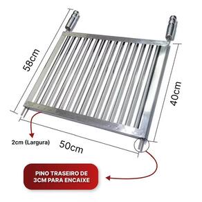 Com medidas de 50cm de largura e 40cm de profundidade, essa grelha oferece um amplo espaço para preparar diversos cortes de carne ao mesmo tempo. Além disso, sua profundidade total de 58cm garante um espaço extra para manipulação dos alimentos, trazendo praticidade durante o churrasco.