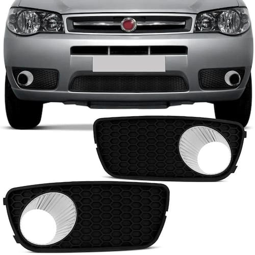 Grade Moldura Lado Esquerdo Farol Milha Palio Siena 2005 a 2010 Weekend 2004 a 2007 com Furo Aro Cromado