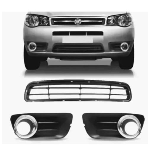 - Compatível com: Fiat Palio G3 2010 a 2016, Fiat Siena G3 2010 a 2012 - Material: Plástico resistente - Cor: Preto com aro cromado - Kit inclui: 1 grade central + par de molduras grade milha aro cromado lado esquerdo e lado direito com milha preta aro cromada