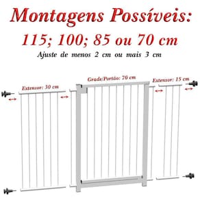 Composição do Produto: - 1 Grade Portão de 68 cm - 1 Extensor de 15 cm - 1 Extensor de 30 cm - 4 conjunto de parafusos + manípulos + buchas para fixação