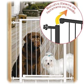 - O sistema de travamento por pressão impede sua abertura por crianças ou animais, separando os ambientes