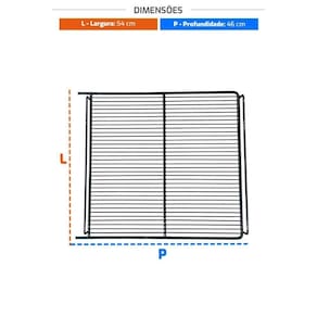 Dimensões: - Medidas totais: 54 cm L x 46 cm P. - Peso: 1,2kg. - Peso embalado: 1,5kg.