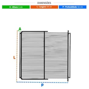 - Dimensões: 4cm A x 44cm L x 43cm P;