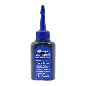 Grafite Em Po Western 25G Especificacao: O Grafite em Pó é um excelente lubrificante a seco, ideal para fechaduras, cadeados, canaletas entre outras superfícies que necessitam da lubrificação a seco.- Para uso: Autos: Antenas elétricas, canaletas de vidros. Lar: Cadeados, portões, trilhos, fechaduras, máquinas, maçanetas etc... Imagens meramente ilustrativas.,:- Dimensões da Peça: 3,8 x 2,8 x 11cm- Quantidade Master: 24 Peças- Dimensões Master: 17,5 x 17,5 x 13cm- Material: Grafite mineral- Cor: Preto- Tipo de Embalagem: Avulso- Marca: Western- Peso líquido: 25g
