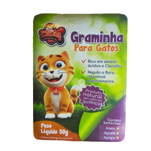 Graminha Gatos Grama Digestão Eliminação Bola de Pelos Graminha Gatos Erva Finas Cat Dog 50g Foi desenvolvida especialmente para auxiliar no bom funcionamento do sistema digestivo e intestinal dos gatos. Ao ingerir a graminha, a digestão do pet é regulada e as temidas bolas de pelo são eliminadas. As sementes de gramíneas forrageias, contidas nessa embalagem, atingem os padrões mínimos exigidos de pureza e germinação. As sementes foram acondicionadas em substrato inerte, com teor mínimo de umidade, em recipiente fechado. Modo de Usar: Regue a graminha e espere de seis a oito dias para que os brotos nasçam. A germinação dessas sementes depende do armazenamento em local seco e fresco. Em condições ideiais de umidade, luminosidade e temperatura, as sementes irão germinar e produzir uma massa verde de forrageira, Composta de sais minerais, vitaminas e aminoácidos, essencial à saúde e rica em fibras verdes. Especificações Idade: Filhote, Adulto e SêniorPet: GatosTipo: Graminha para gatoComposição: Material orgânicoApresentação: Disponível em embalagem com 50g.
