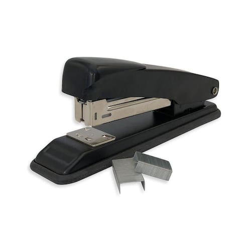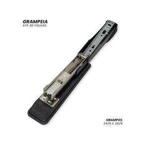 Especificações: - Material: Aço e Plástico ABS - Medida: 13,5cm x 3,5cmx 5,6cm - Capacidade: até 20 Folhas - Grampos: 26/06 e 24/06 - Cor: Preto ============================================================ Devido à diferença entre monitores e iluminação diferentes, pode haver variação na tonalidade apresentada no anúncio. Medidas muito aproximadas. Marca: Não Informado