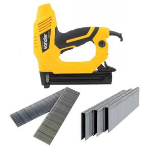 Grampeador/pinador elétrico é indicado para estofarias, marcenarias, artesanato, madeiras moles, entre outros. Proporciona maior agilidade nos processos de fixação. Possui empunhadura com cobertura emborrachada que confere maior conforto ao operador. Conta, ainda, com amortecedor de borracha que evita marcações nas peças e sistema de segurança que só permite o acionamento do grampeador/pinador quando pressionado à peça, evitando disparos involuntários. Utilizar somente grampos tipo 600 Vonder de 16mm e 19mm de altura e pinos tipo F Vonder de 15mm, 20mm e 25mm de altura; Fator de trabalho: máximo de 20 grampeadas por minuto. Especificações Técnicas: Tensão V : 110 Frequência Hz : 60 Largura do grampo indicado: 5,7mm Espessura do grampo indicado: 1,0mm Altura do grampo indicado: 16mm e 19mm Tipo e tamanho de pino indicado: Tipo F de 15mm, 20mm e 25mm Espessura do pino: 1,00mm Capacidade aproximada de grampos/pinos: 100 grampos / pinos Índice de proteção IP : IP20 Segue norma: IEC 607451 e IEC 60745216 Massa aproximada: 1,6kg Marca: Não Informado Ean: 7893946534301