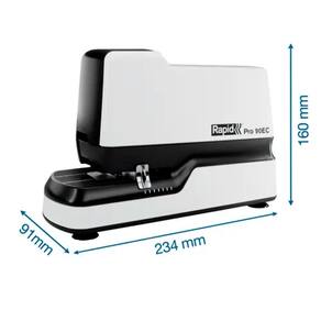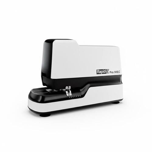 Grampeador Eletrico 90EC Rapid 230V O Grampeador Elétrico Rapid 90EC é ideal para ambientes de alto volume. Graças ao seu motor magnético, ele grampeia em um ultrarrápido tempo de 1/100 de segundo, garantindo a maior produtividade. Projetado para se integrar ao seu fluxo de trabalho, ele se adapta perfeitamente à área da copiadora. Oferece máxima precisão com bigorna e profundidade de grampeamento ajustáveis e facilita a operação com carregamento frontal. Sua base com almofada de borracha assegura estabilidade total.