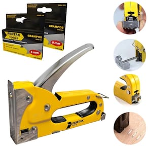 Leve e fácil de manusear o Grampeador da Fertak oferece a você ampla aplicação pois aceita grampos no formato Reto de 4 - 8mm. Além de sistema de recarga fácil o grampeador dispõe de corpo em aço reforçado, gatilho de acionamento superleve, suporte para mão emborrachado com ótimo encaixe para os dedos, proporcionando maior conforto durante o manuseio, trava do gatilho para maior segurança, removedor de grampos embutido ao corpo, pino que permite ajuste de perfuração e excelente precisão, garantindo resultados de ótima qualidade.