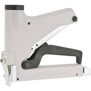 Grampeador Manual 51/A - Rocama - O Grampeador Manual 51/A da Rocama é indicado para uso em tapeçaria, fixação de forros, telas, cartazes, serigrafia, marcenaria, vitrinismo, hobby, cartonagem, embalagem e decoração. Ele possui corpo em aço resistente, capacidade para grampos de 6mm a 16mm, e é fácil de manusear. É uma ferramenta essencial para quem trabalha com estofados, móveis, artesanato, entre outras atividades que necessitem de fixação rápida e precisa.