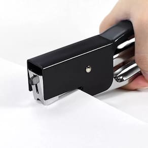 Capacidade de utilização para grampo aberto, grampo fechado, e alfinetar em até 30 folhas de papel sulfite de 75g ou material equivalente, com grampos nas medidas 24/6-26/6