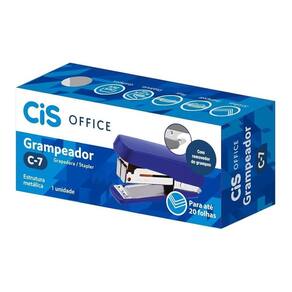 O grampeador c-7 da cis é excelente para pequenos trabalhos. Além de ser versátil e fácil de guardar pelo seu tamanho, com estrutura plástica e com removedor de grampos. Para grampos 24/6 e 26/6. Uso ideal até 20 folhas. Contém: 1 grampeador grampo: 26/6 e 24/6 Atenção: imagem meramente ilustrativa. Pode ocorrer mudanças na tonalidade da cor do produto.