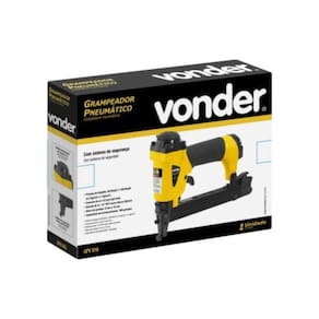 Grampeador pneumático Vonder Código: 62.58.000.616Utilizado na fabricação de embalagens de madeira, estofarias, indústrias de calçados e marcenarias. Mantenha a ferramenta constantemente lubrificada e utilize sempre o regulador de pressão e o lubrificador de linha com óleo pneumático. Utilizar somente grampos marca Vonder apropriados para este equipamento.Possui corpo em alumínio com empunhadura emborrachada que proporciona resistência e conforto, direcionador de escape de ar e sistema de segurança que só permite o acionamento do grampeador quando pressionado à peça, evitando disparos involuntários.Especificações técnicas:Consumo de ar do grampeador pneumático:0,2 pcm pé3/min Pressão de trabalho PSI :60 lbf/pol2 - 100 lbf/pol2Diâmetro e tipo da rosca de entrada de ar do grampeador pneumático:1/4" NPT rosca interna fêmea Capacidade aproximada de armazenamento do grampeador pneumático:100 gramposAltura dos grampos do grampeador pneumático:6 a 16 mmMassa aproximada:0,75 kg
