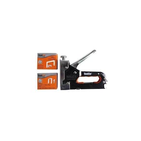 Grampeador Tapeceiro Madeira Profissional + Maleta + Grampos Amplamente utilizado em artesanatos, tapeçarias, telas de pintura, confecção de estofados, festas e fixação em geral de gramposAplica:- Grampos comuns de 4mm até 14mm;- Grampos formato U de 10mm até 12mm;- Pinos pregos sem cabeça de 10mm até 12mm.Tamanho aprox.: 14cm x 16cm x 2,5cmAcompanha:200 Grampos de 11x8mm;200 Grampos formato U de 12x6mm;200 Pregos sem cabeça de 10x2mm;1 Grampeador;1 Maleta para transporte. Marca: Tienda Online
