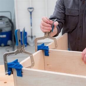 O Kreg 90° Corner Clamp oferece a ajuda necessária para segurar cantos de 90° e juntas em "T" firmemente quando estiver montando caixas, gavetas, armários e estojos. Além disso, o 90° Corner Clamp deixa suas duas mãos livres para adicionar seus fixadores. O 90° Corner Clamp é o grampo de canto mais rápido e fácil de usar que você pode comprar, graças à tecnologia de ajuste automático Kreg Automaxx. As mandíbulas em cunha em V do grampo prendem as peças de encaixe com segurança, garantindo que as peças fiquem em ângulos precisos de 90° enquanto você coloca parafusos Kreg ou até mesmo outro tipo de fixador, como um prego ou parafuso de madeira.