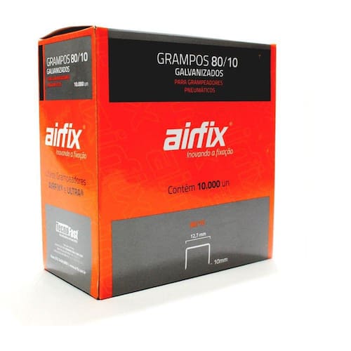 CARACTERÍSTICAS:- Os grampos da AirFix são fabricados sob medida para o seu projeto, é um produto indispensável para aplicações que possuem a necessidade de fixação, sendo ideais para tapeçaria, bancos, acessórios automotivos, aplicação de espuma e estofamento de cadeiras, além de cintas elásticas, telas, urnas funerárias, decoração, fabricação de móveis em geral e portas de compensado.Cuidados:- Não acione a ferramenta se ela não estiver firmemente posicionada;- Não aponte ela para si ou para os outros, mesmo que acredite estar descarregada;- Evite movimentá-la com o dedo no gatilho da ferramenta;- Não carregue os grampos com a ferramenta conectada na fonte de energia;- Mantenha as suas ferramentas fora do alcance de crianças.ESPECIFICAÇÕES:- Marca: AirFix- Modelo: 6131040- Aço de carbono- Tipo do grampo: 80- Diâmetro: 10mmIMAGENS MERAMENTE ILUSTRATIVAS