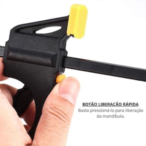 Tamanho: Disponível em diferentes medidas conforme necessidade. Material: Corpo em aço com empunhadura ergonômica em plástico reforçado. Sistema de Aperto: Mecanismo de liberação rápida para ajuste eficiente. Aplicações: Marcenaria, carpintaria, serralheria, bricolagem e fixação de peças diversas.