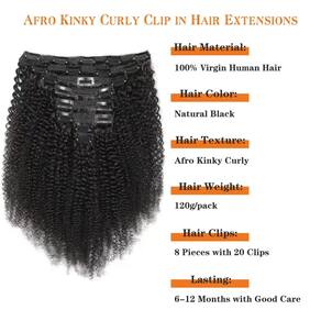 Marca: Yacurcur Cor: Preto natural Material: Cabelo humano Comprimento: 25-56 cm Estilo: Afro Kinky Curly Clip in Peso: 0,26 libras (120 g) /pacote.
