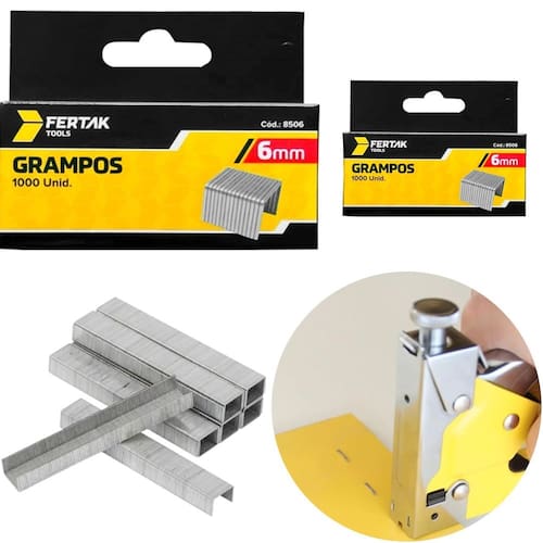Kit 3000 Peças Grampo 6mm Fertak O Kit com 3000 Grampos 6mm Fertak é ideal para uso em grampeadores manuais ou elétricos, oferecendo alta durabilidade e eficiência em diversos tipos de trabalhos. Indicado para fixação de papéis, tecidos, plásticos, couro, forros, estofados e muito mais.
