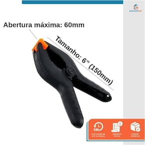 O Grampo Multiuso Starfer é ideal para manter materiais pressionados durante colagens, perfurações e montagens de peças. É a ferramenta certa para você que trabalha na construção civil ou com pequenos reparos, essencial para um trabalho com finalização perfeita. - Fácil Manuseio;- Cabo com sistema de mola;- Mordentes de plásticos Nylon articulados. CARACTERÍSTICAS TÉCNICAS:Medidas: NylonMedidas: 150mm 6 x 60mm abertura máxima Quantidade: 6 unidadesMarca: StarferRef.: 7012187