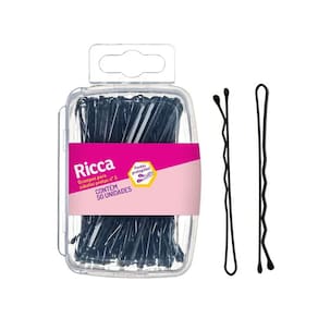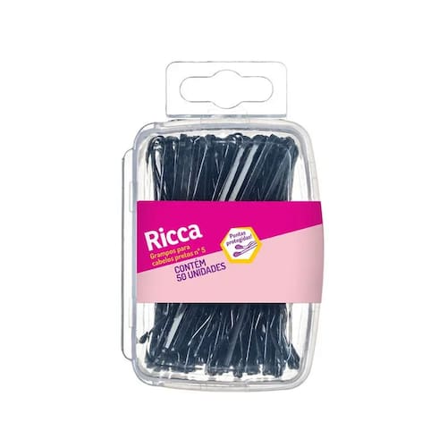 Os Grampos para Cabelo Preto Caixa PVC Ricca são feitos em aço e possuem proteção nas pontas para não machucar o couro cabeludo. São indicados, para cabelos escuros, para a construção de penteados. No total são 50 unidades.