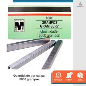 Esse grampo garante alta performance e firmeza para suas atividades. Ideal para ser utilizado em grampeadores pneumáticos e manuais Ref 80 F E 80 W. Indicado para trabalhos que exigem uma fixação mais firme e pesada como fabricadores de móveis, instaladores de pisos e tapetes, eletricista e trabalhadores da construção civil, indústria de calçados, montagem de quadros, vassouras e outras aplicações. CARACTERÍSTICAS TÉCNICAS:Material: Aço carbonoMedidas: 6mm altura x 12mm largura x 0,61mm x 0,94mm espessura Tipo do grampo: Tipo retoQuantidade por caixa: 6000 gramposMarca: Rocama Ref.: 7008708