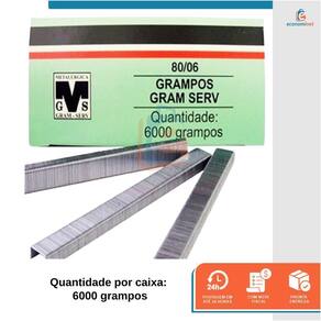 Esse grampo garante alta performance e firmeza para suas atividades. Ideal para ser utilizado em grampeadores pneumáticos e manuais Ref 80 F E 80 W. Indicado para trabalhos que exigem uma fixação mais firme e pesada como fabricadores de móveis, instaladores de pisos e tapetes, eletricista e trabalhadores da construção civil, indústria de calçados, montagem de quadros, vassouras e outras aplicações. CARACTERÍSTICAS TÉCNICAS:Material: Aço carbonoMedidas: 6mm altura x 12mm largura x 0,61mm x 0,94mm espessura Tipo do grampo: Tipo retoQuantidade por caixa: 6000 gramposMarca: Rocama Ref.: 7008708