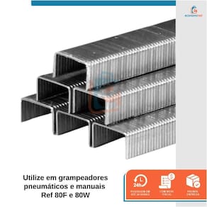 Esse grampo garante alta performance e firmeza para suas atividades. Ideal para ser utilizado em grampeadores pneumáticos e manuais Ref 80F e 80W. Indicado para trabalhos que exigem uma fixação mais firme e pesada como fabricadores de móveis, instaladores de pisos e tapetes, eletricista e trabalhadores da construção civil, indústria de calçados, montagem de quadros, vassouras e outras aplicações.