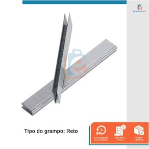 CARACTERÍSTICAS TÉCNICAS: Material: Aço carbono Medidas: 10mm altura x 12mm largura x 0,61mm x 0,94mm espessura Tipo do grampo: Tipo reto Acabamento do grampo: Zincado Quantidade por caixa: 4000 grampos Marca: Rocama Ref.: 7008716 Marca: Não Informado Ean: 7891638997168